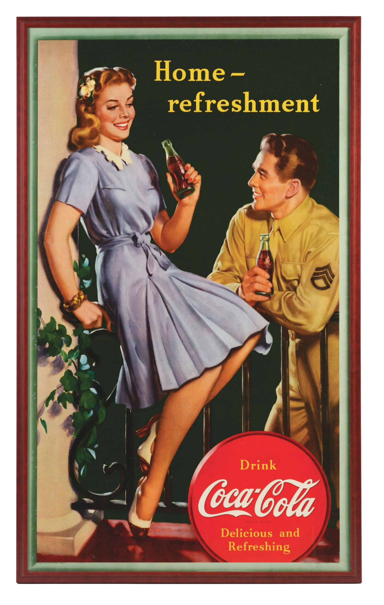 1944 Large Vertical Coke Poster with Serviceman and