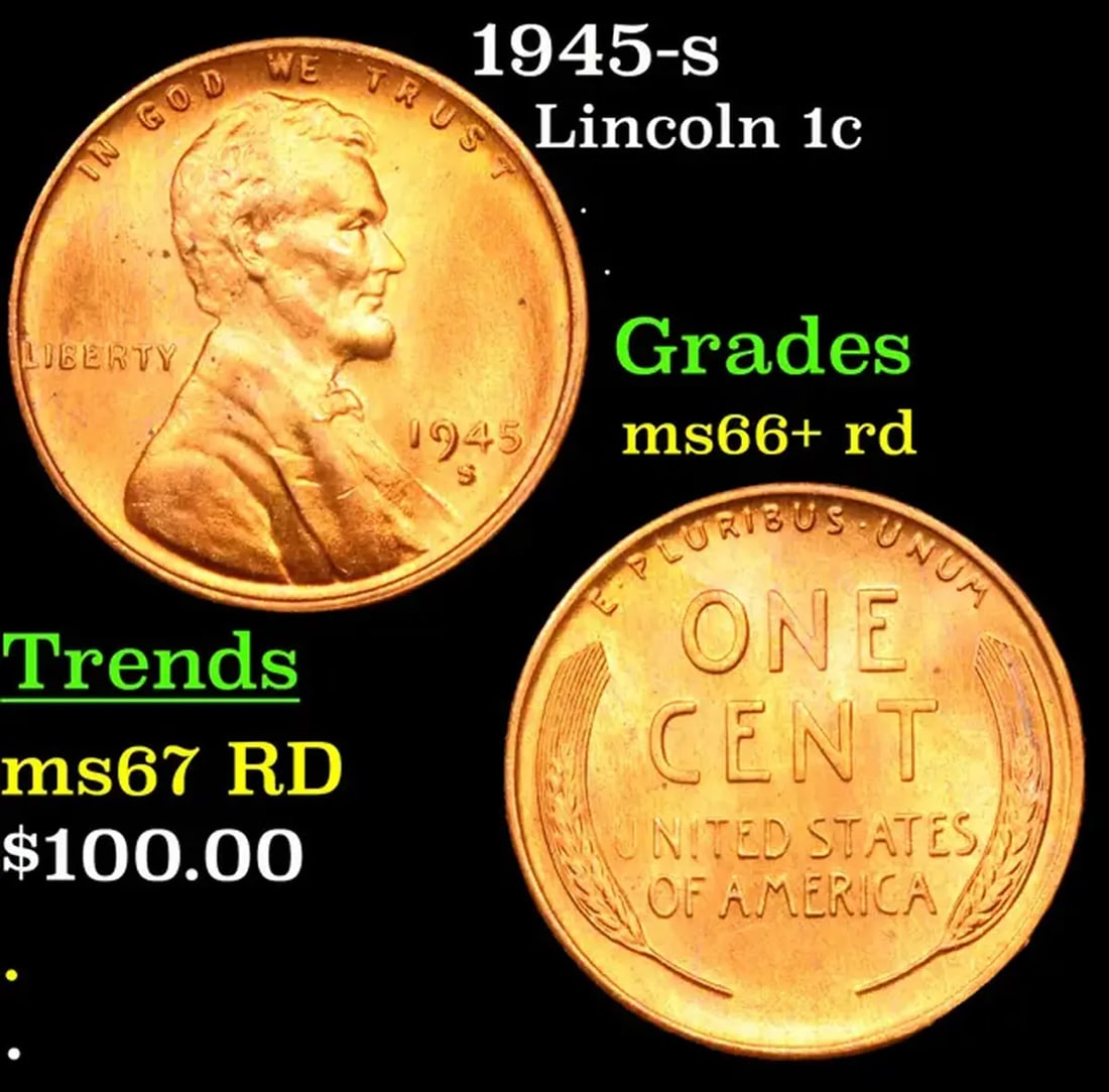 1945-s Lincoln Cent 1c Grades GEM++ RD