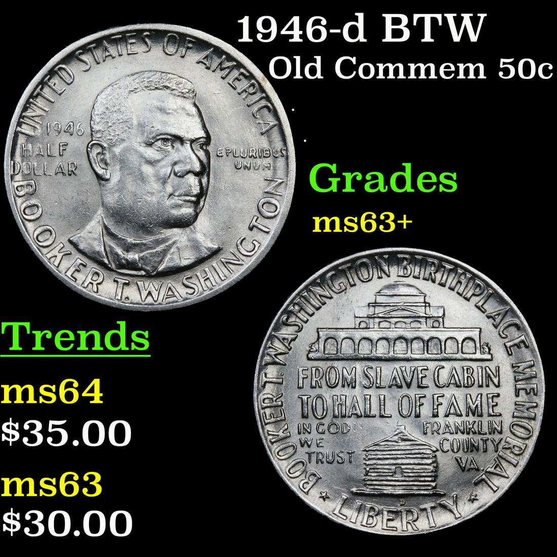 1946-d BTW Old Commem 50c Grades Select+ Unc