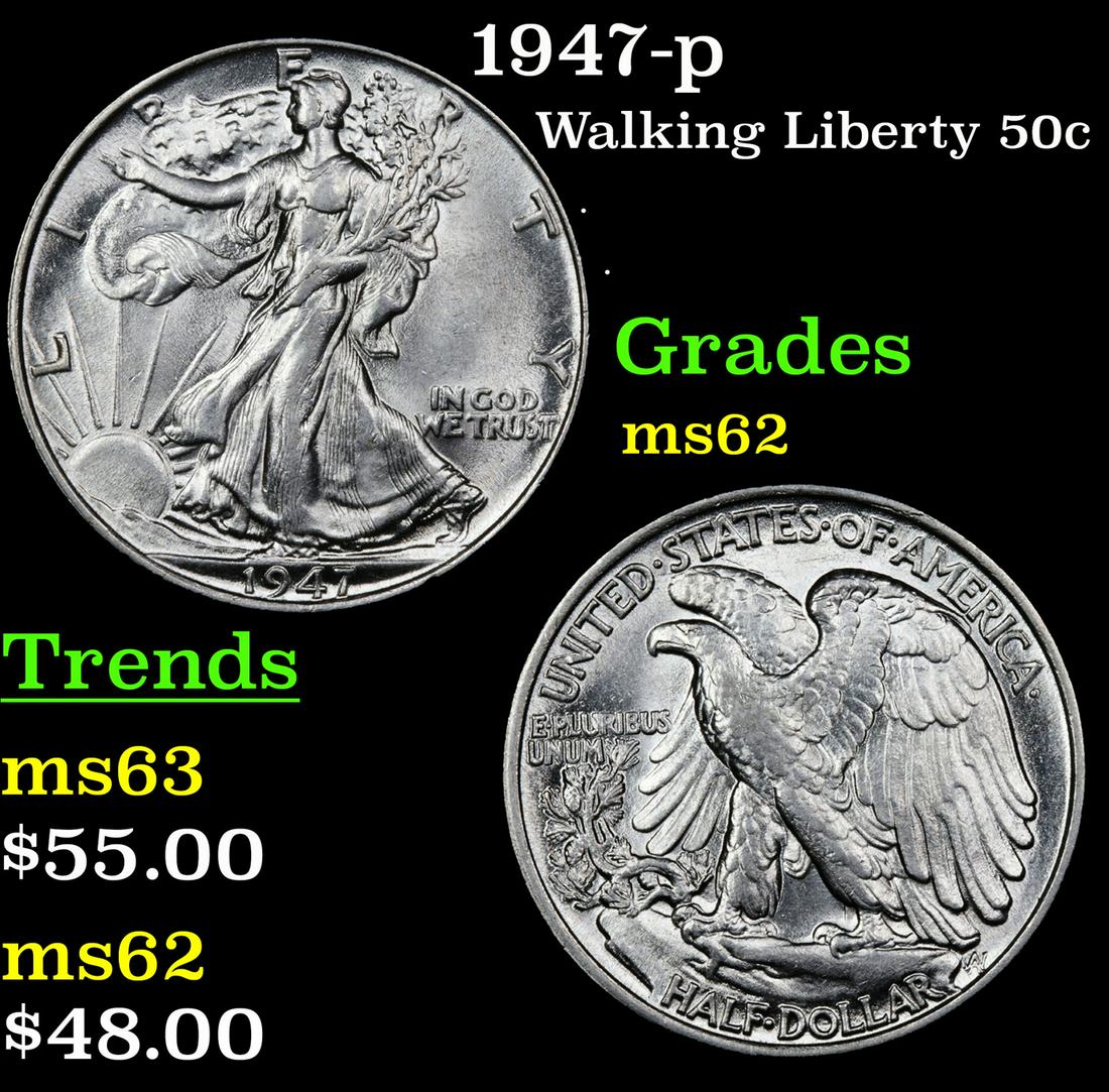 1945-p Walking Liberty Half Dollar 50c Grades ms66