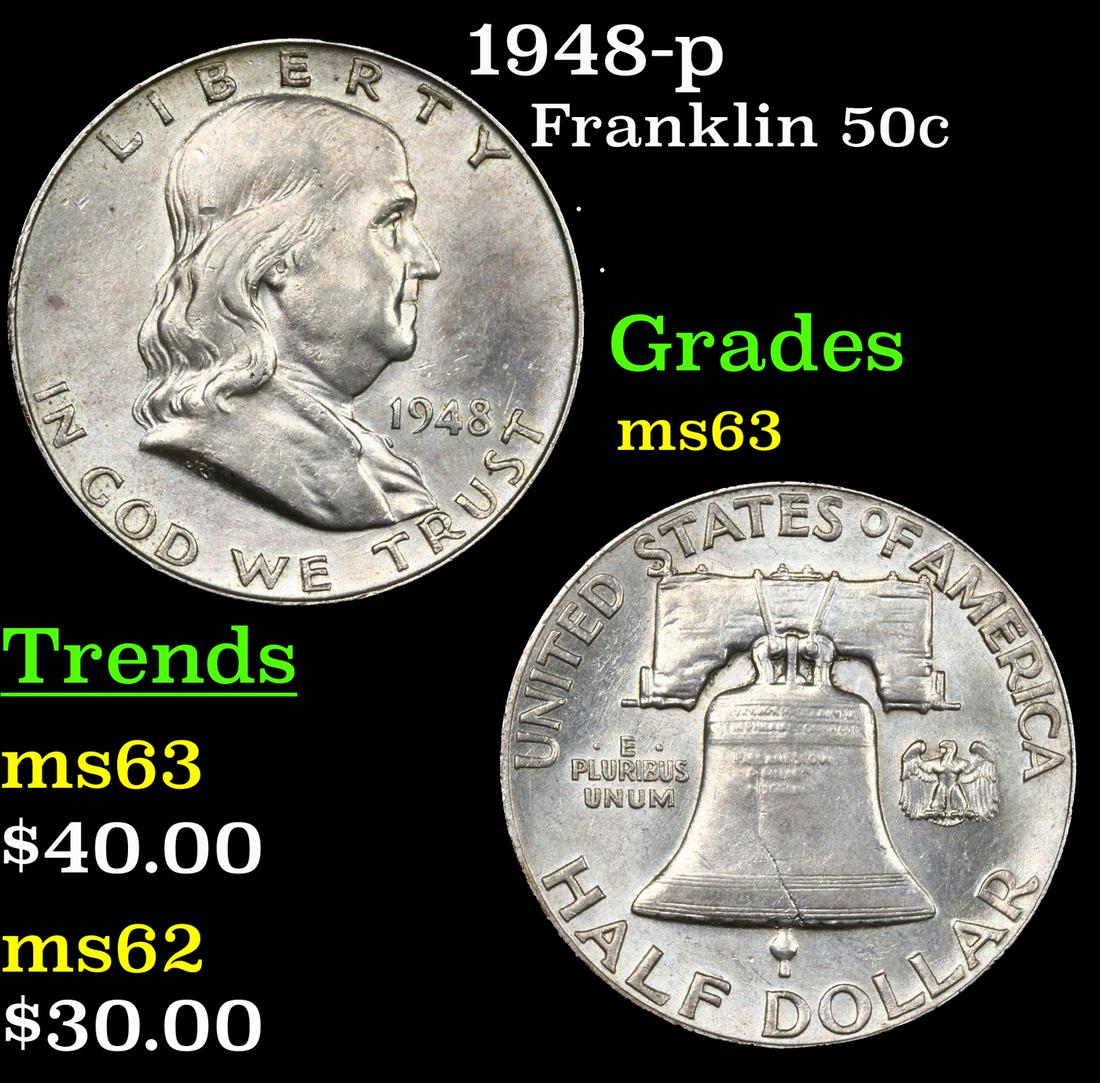 1948-p Franklin Half Dollar 50c Grades Select Unc