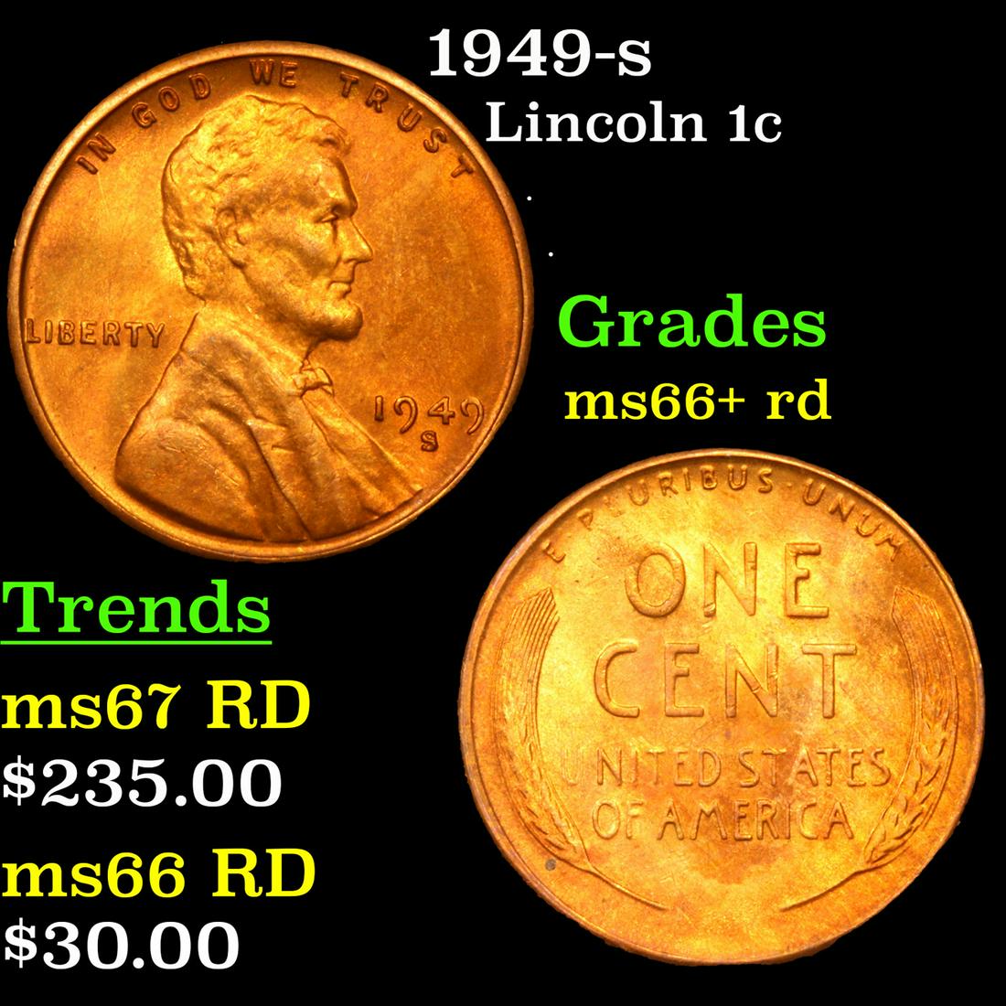 1949-s Lincoln Cent 1c Grades GEM++ RD
