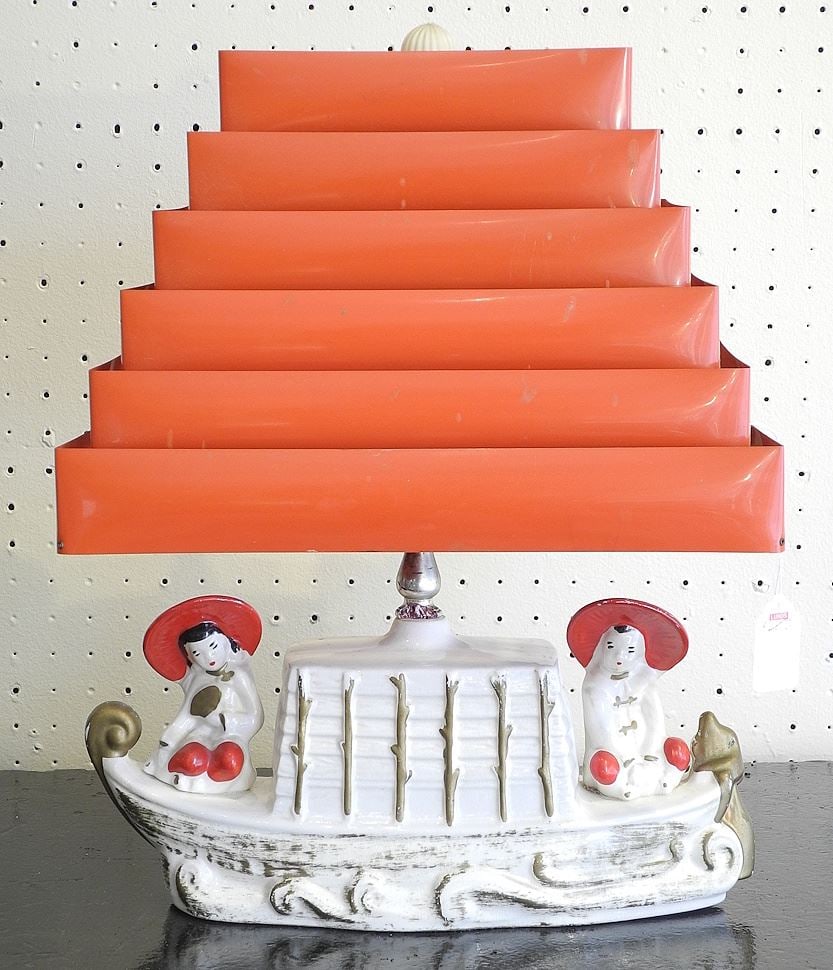 1950's Ceramic Table Lamp with Pyramidal Shade, 18"h.