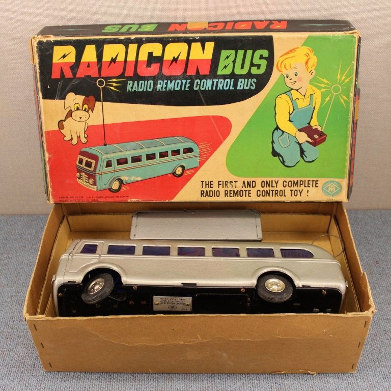 Radicon Benz remote control car, Mercedes 230SL, Radio Remote Control Toy, in original box, in whiteRadicon Benz remote control car, Mercedes 230SL, Radio Remote Control Toy, in original box, in white with burgundy colored roof, has some rust on exterior battery compartment, complete with remote, go