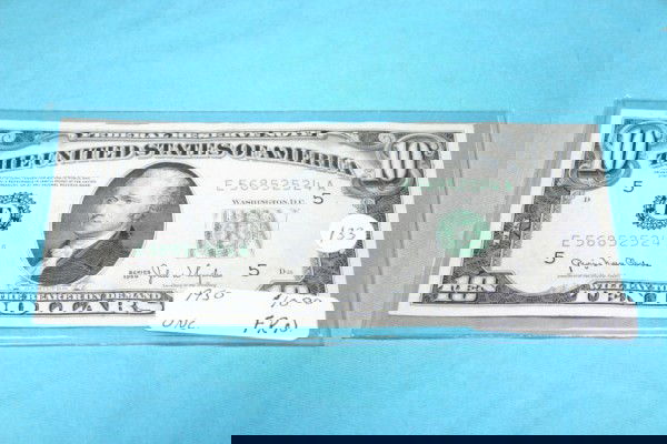 SoldSix 10 Dollars Federal Reserve Bank Note 1950,1969 and 1974Six 10 Dollars Federal Reserve Bank Note 1950,1969 and 1974,Preview from Aug. 22nd to 26th from 2:00 PM TO 6:00 PM Eastern Time, Location: 15229 Display Court, Rockville MD 20850See Sold Price