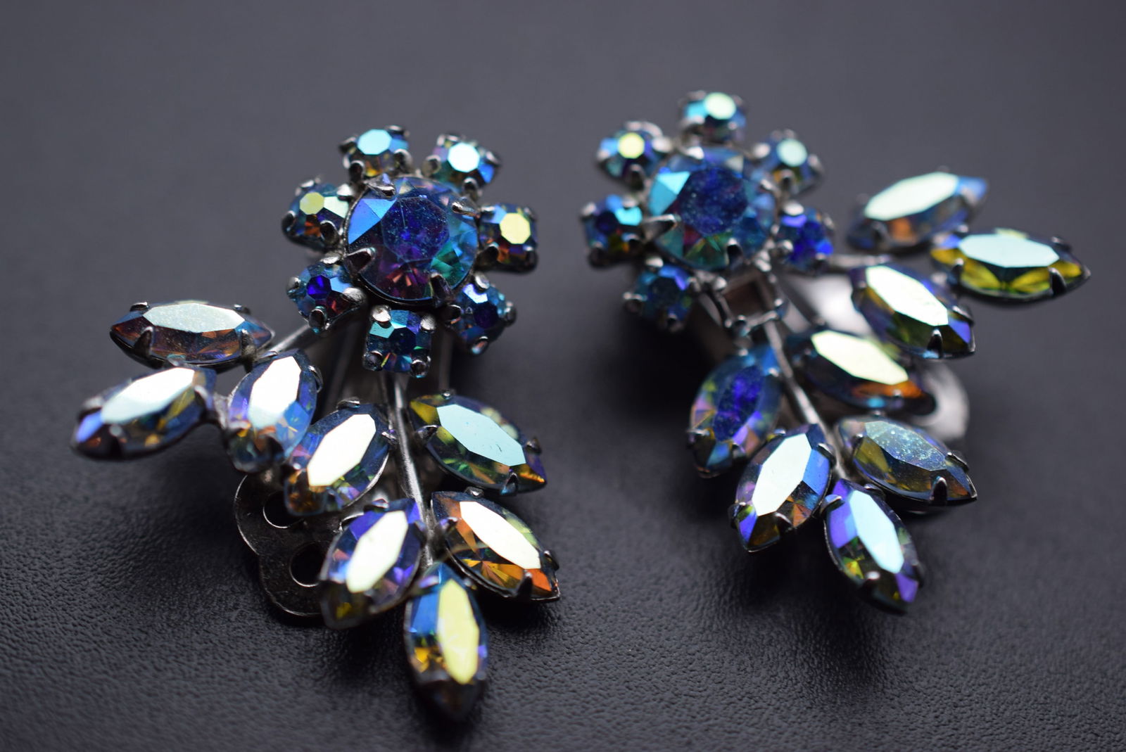 Sherman Clip Flower Rhinestone 1950's Earrings Vintage Signed Lot 1163