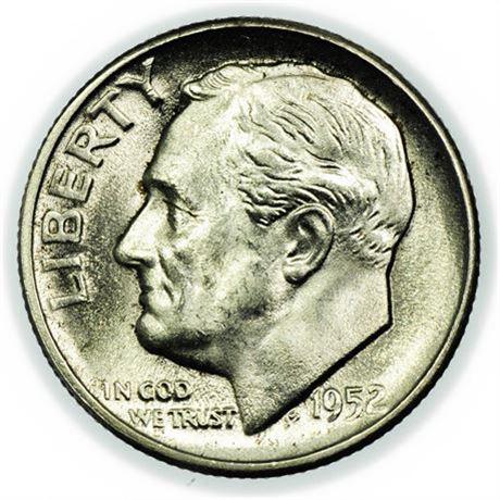 Sold1952 Roosevelt Dime CoinKEY WORDS: INDIAN ARTIFACT ARTIFACTS ARROWHEAD ARROWHEADS NATIVE AMERICAN MISSISSIPPIAN QUAPAW CADDO POTTERY COINS MORGAN DOLLAR PEACE DOLLAR SILVER COINS. All coins have been Sigma tested for authentSee Sold Price