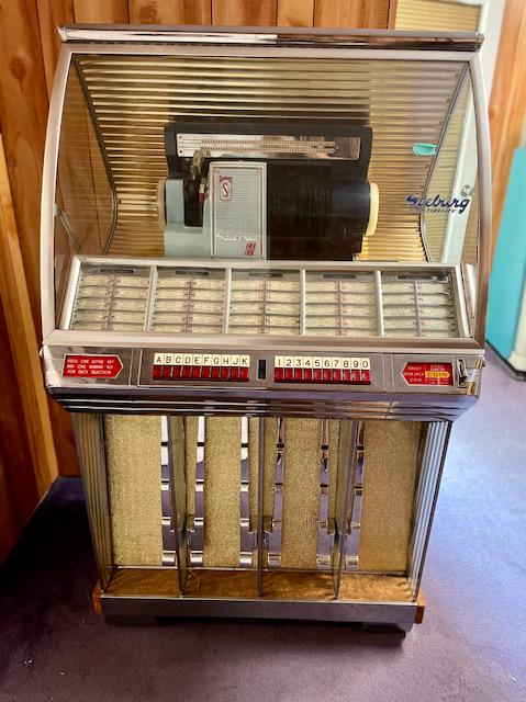 SoldSeeburg Model R Coin Operated JukeboxSeeburg Model R Coin Operated Jukebox. Working, has keys. Includes 45rpm records inside. Has a free play button the back. This item requires third party shipping or pickup arrangements to be made. **RSee Sold Price