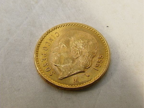 1955 Cinco 5 Dollar Gold Coin. Dimensions