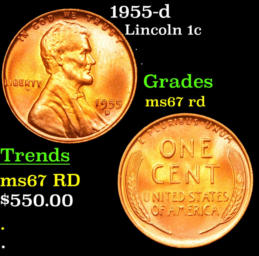 1955-d Lincoln Cent 1c Grades GEM++ Unc RD