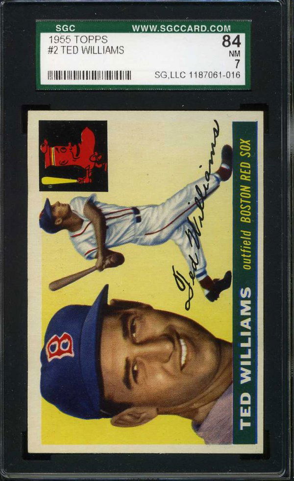 SoldA 1955 Topps Ted Williams Baseball Card No. 2 (SGC 4 VG/EX)A 1955 Topps Ted Williams Baseball Card No. 2 (SGC 4 VG/EX) NOTE: If a bid is placed within one minute of the closing time of a lot, five additional minutes will be added to the designated closing timSee Sold Price