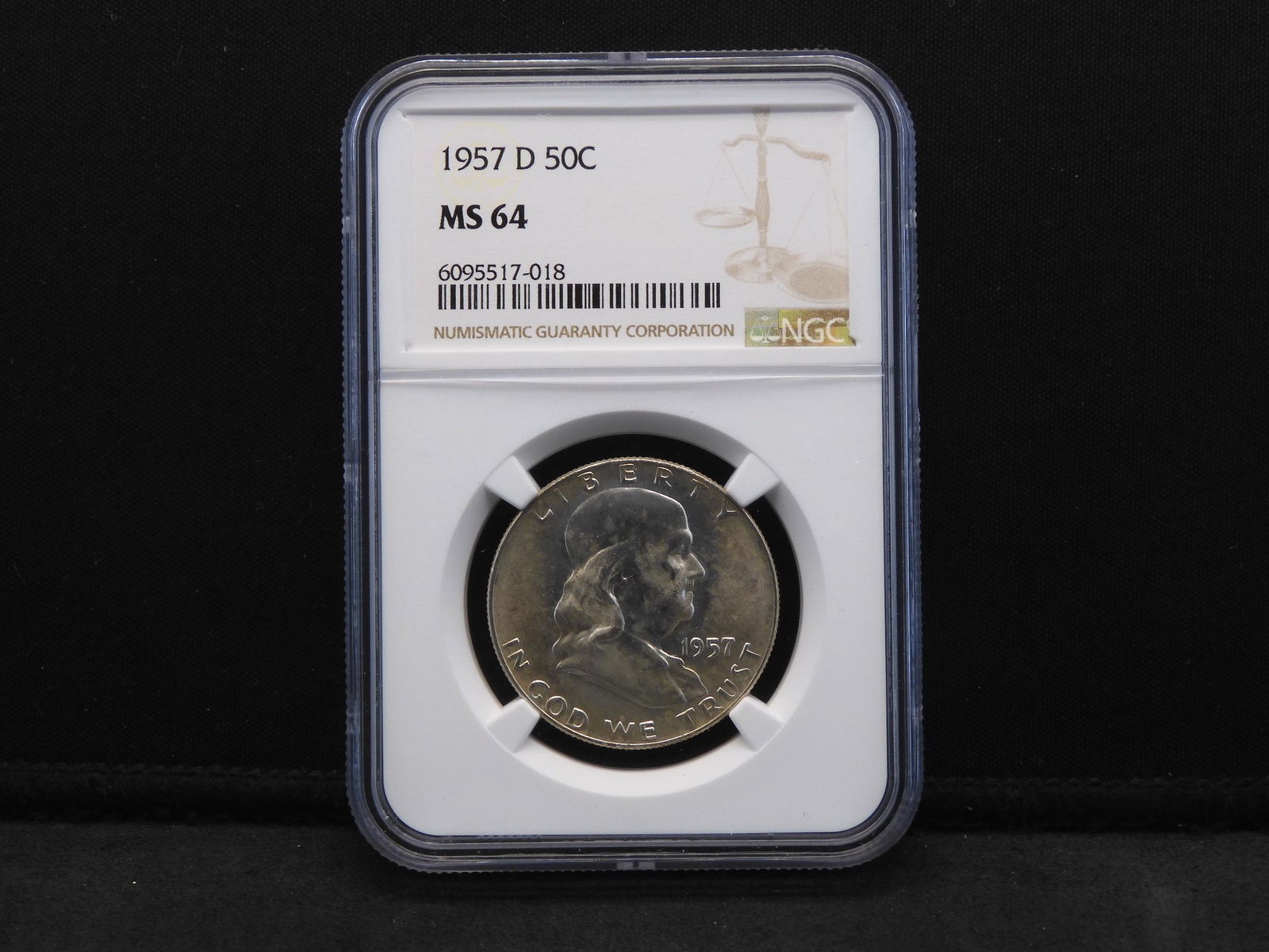 1957-D NGC MS64 Franklin Silver Half Dollar