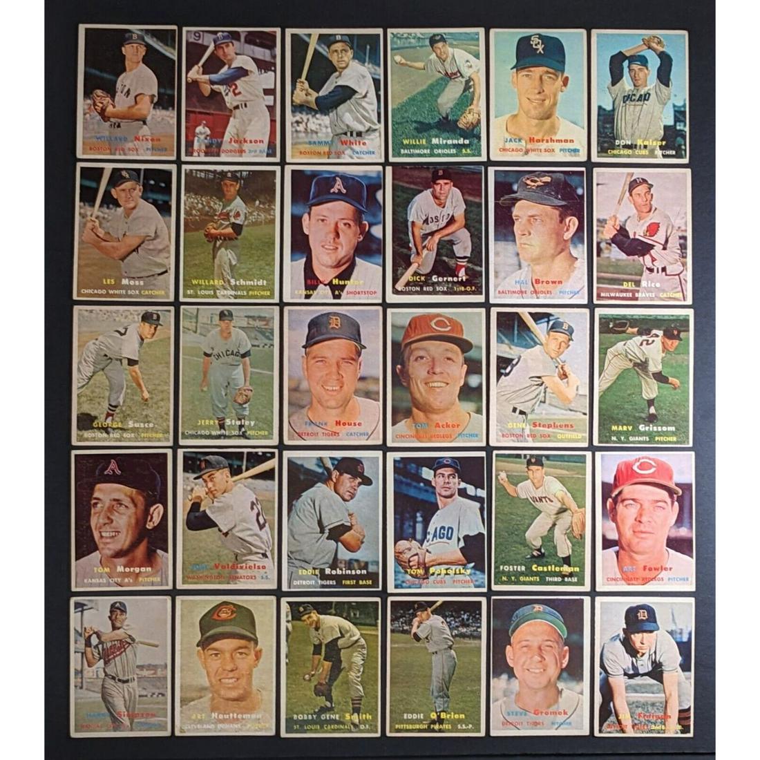Sold1957 Topps Baseball lot of 27 , see all pics for cards included, set starter lotPlease see all photos to see which cards are included. We took nearly 5000 pictures for this auction, and some lots have up to 90 photos. Please see all photos and request more if needed to make yourSee Sold Price