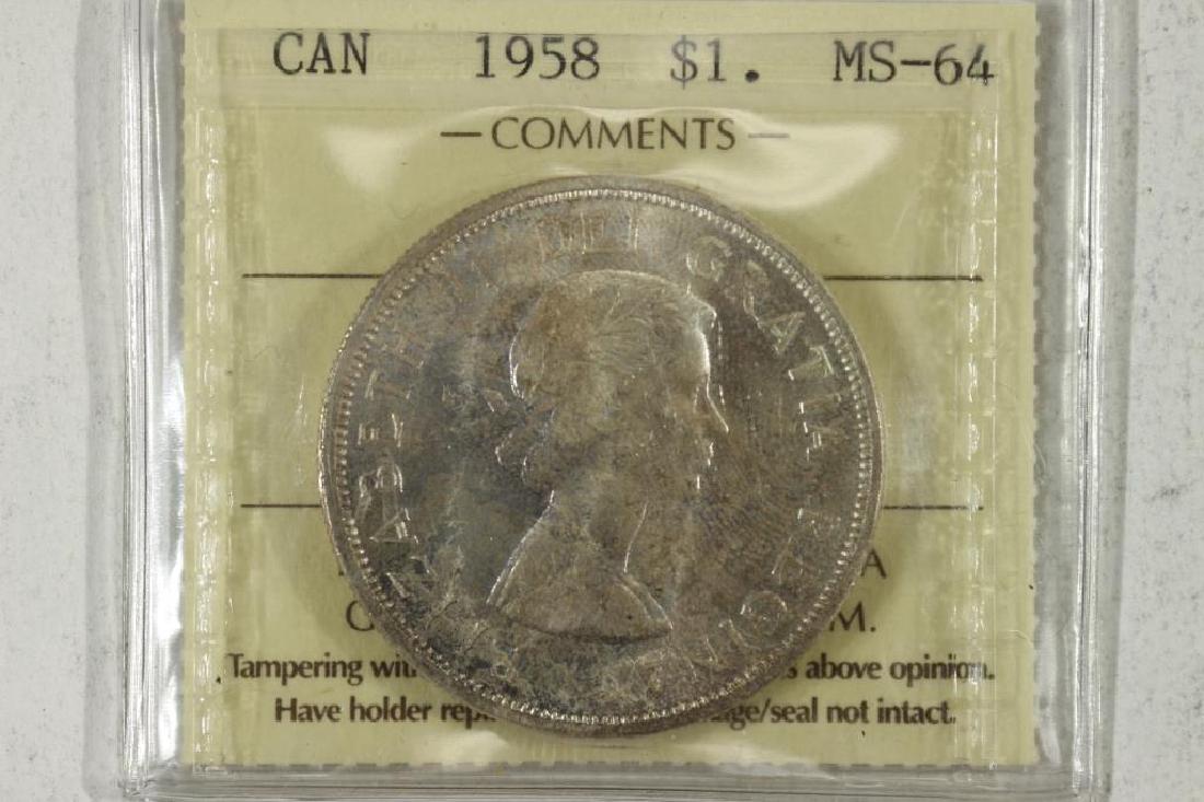 Canada, 1958 Silver Dollar -ICCS MS64No Reserve! Title: Canada, 1958 Silver Dollar -ICCS MS64 Materials: Coin Description: Canada, 1958 Silver Dollar -ICCS MS64 Shipping: Domestic: Shipping rates are determined by destination InternationSee Sold Price