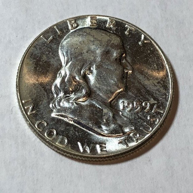 1959-P BU FRANKLIN SILVER HALF DOLLAR...