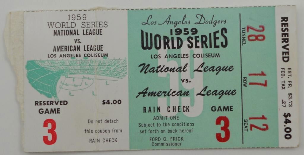 9 1959 World Series Baseball Game 6 Dodgers Vs. White Sox Full Game Ticket PSASEUYCO4.5(52)$1,200Mar 03, 2026