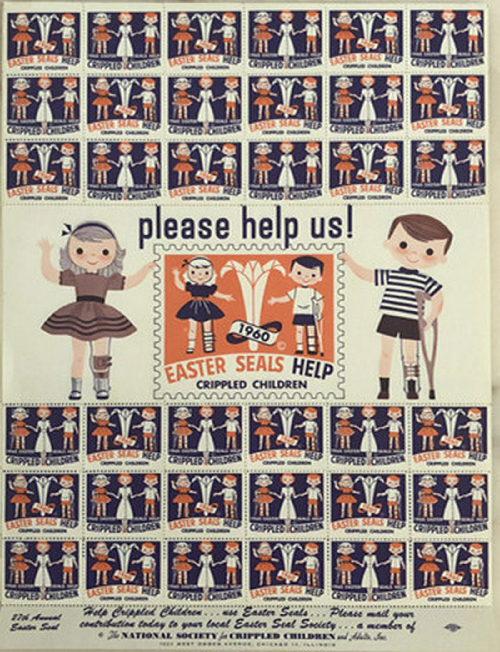1960 Easter Seals Help Crippled Children Stamps Full