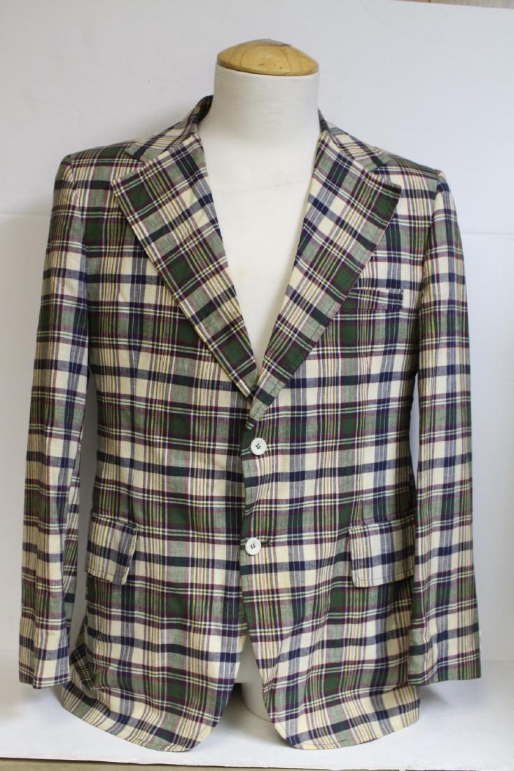 1960s Vintage Plaid Sports Coat Blue Red Cream