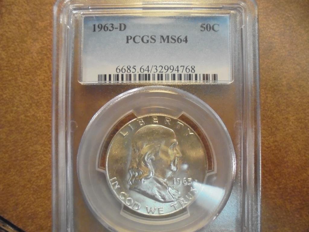 Sold1963 D Franklin Half Dollar PCGS MS64 GradedPCGS Graded 1963 D Franklin Half Dollar, MS64 graded and encased by the PCGS.See Sold Price