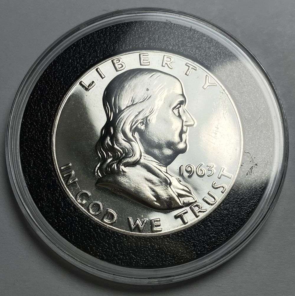 Sold1963 Franklin Silver Half Dollar PF68+Winner shall receive the exact coin shown here. (RR/B)See Sold Price