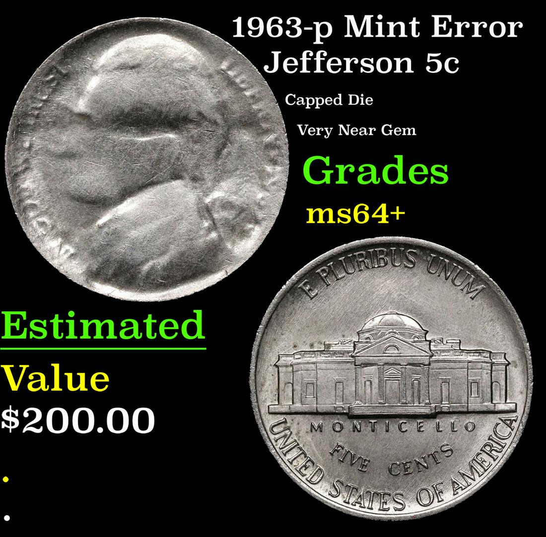 1963-p Jefferson Nickel Mint Error 5c Grades Choice+ Unc