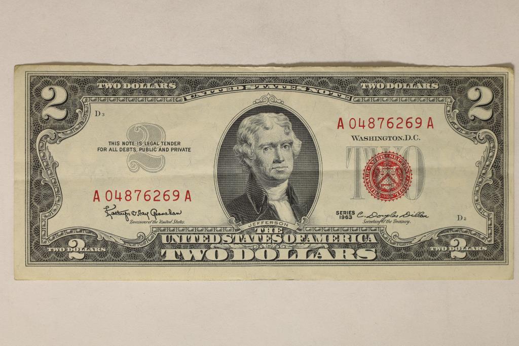 Sold1963 $2 U.S. Red Seal United States Note. Bust Of Thomas Jefferson.1963 $2 U.S. Red Seal United States Note. Bust Of Thomas Jefferson.See Sold Price