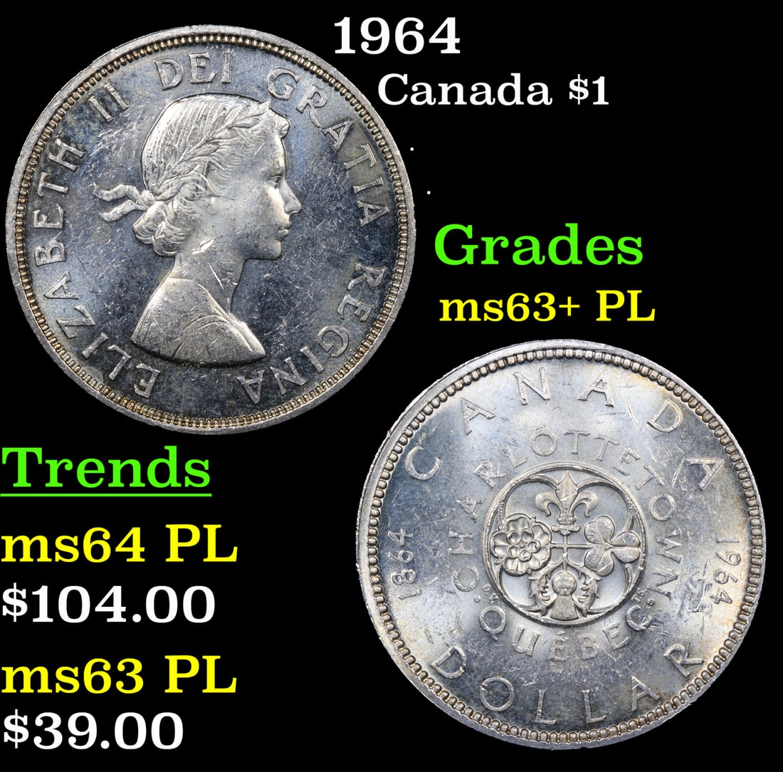 1964 Canada Silver Dollar $1 Grades Select Unc+ PL