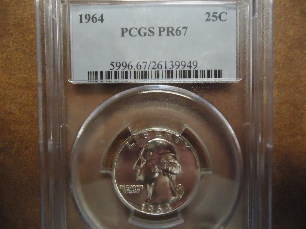 1964 WASHINGTON SILVER QUARTER PCGS PR67