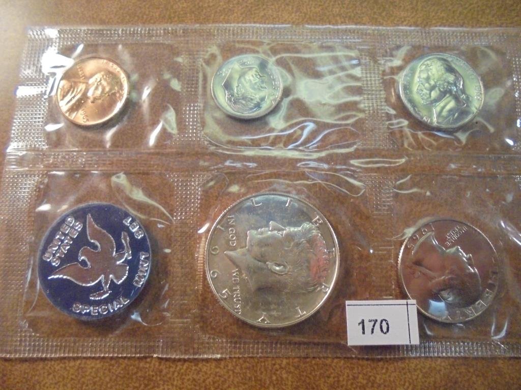 Sold1965 US SPECIAL MINT SET WITH ENVELOPE SEALED40% SILVER JOHN F. KENNEDY HALF DOLLAR, ORIGINAL US MINT PACKAGINGSee Sold Price