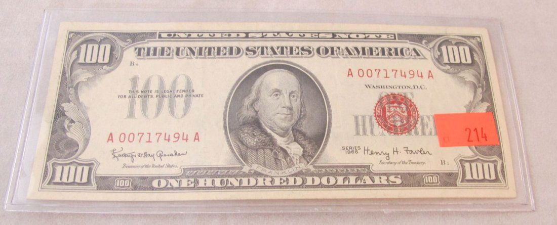 1966 $100 Red Seal Federal Reserve Note Bill Crisp Almost UncirculatedEric's Estate & Jewelry4.6(529)$2001723 Lots Away