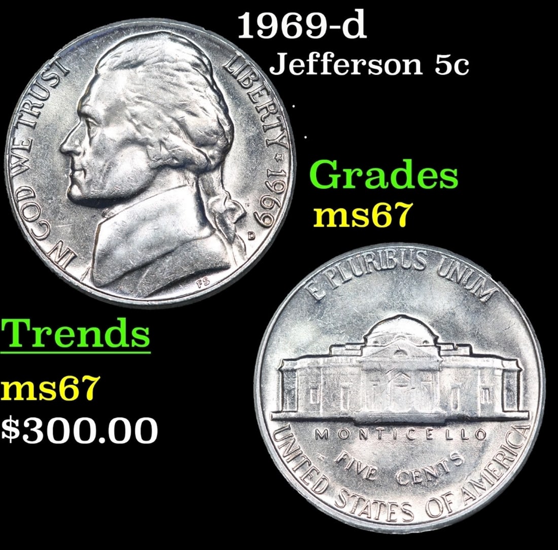 1969-d Jefferson Nickel 5c Grades GEM++ Unc