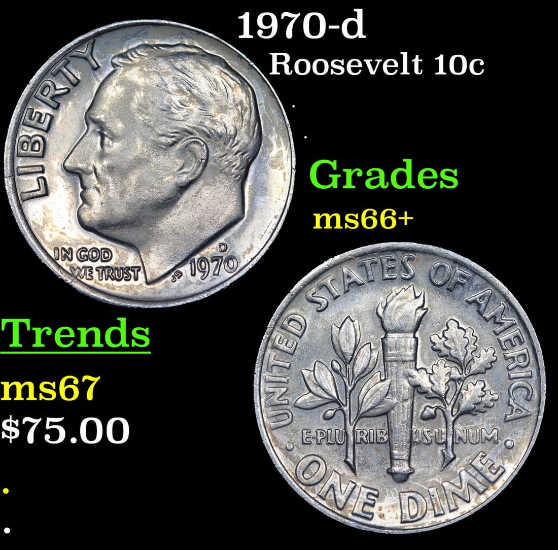 1970-d Roosevelt Dime 10c Grades GEM++ Unc