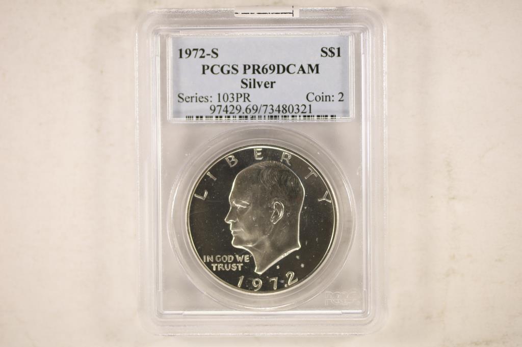 1971-S Eisenhower Dollar PCGS PR69 DCAMMar 02, 20261974-S Silver Ike Dollar, PCGS MS67, PCGS Price $3623 hrs Left1976-S Eisenhower Dollar PCGS PR69 DCAMMar 03, 20261971-S $1 PCGS Proof 67 DCAM Ike Dollar DDO FS-103Feb 28, 20261971 $1 Ike Dollar PCGS MS66+ CAC Approved Rare Gem4 days LeftIke Dollar - 1972-D $1 PCGS MS673 days Left1976-S Silver Kennedy, PCGS PR-69 DCAMFeb 26, 2026Ike Dollar - 1977 $1 PCGS MS664 days LeftIke Dollar - 1976-D $1 PCGS MS67 (Type 2)Mar 03, 20261976-S Eisenhower Dollar PCGS MS66Mar 03, 20261971-S Eisenhower Dollar PCGS MS65Mar 02, 20261972-D $1 Ike Dollar PCGS MS67 Uncirculated Denver Mint17 hrs LeftGraded 1971-S Eisenhower Silver Dollar - PR69DCAM by ICGFeb 26, 2026PCGS 1974-S Eisenhower Silver Dollar PR70DCAM4 days Left1979-S Kennedy Half Dollar, PCGS PR69DCAM- TYPE 123 hrs Left1976-S Kennedy Half Dollar Silver PR70DCAM PCGS Certified17 hrs Left