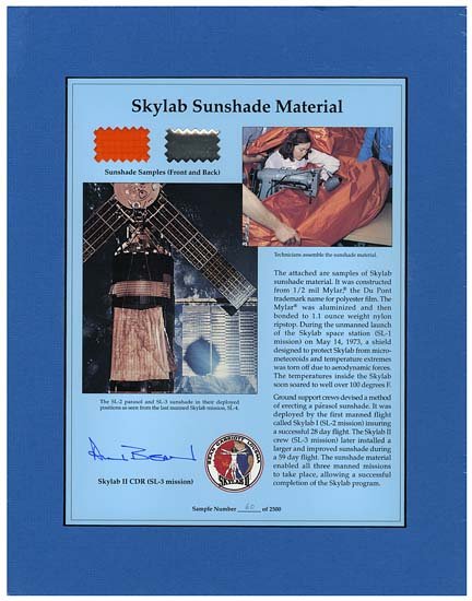 1973 ALAN BEAN SIGNED SKYLAB-3 SUN SHADE MATERIAL