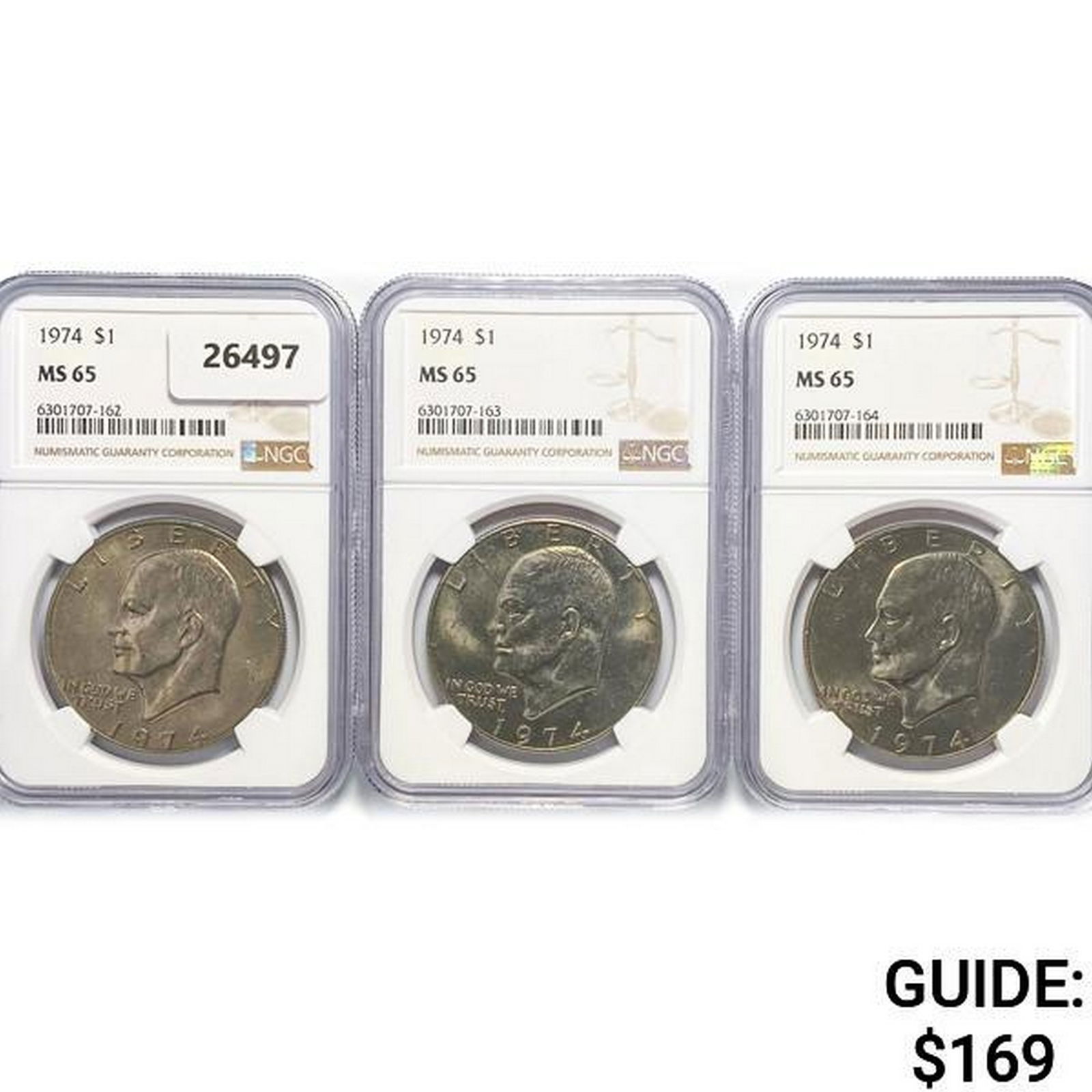 1974 Set [3] Eisenhower Silver Dollar NGC MS65