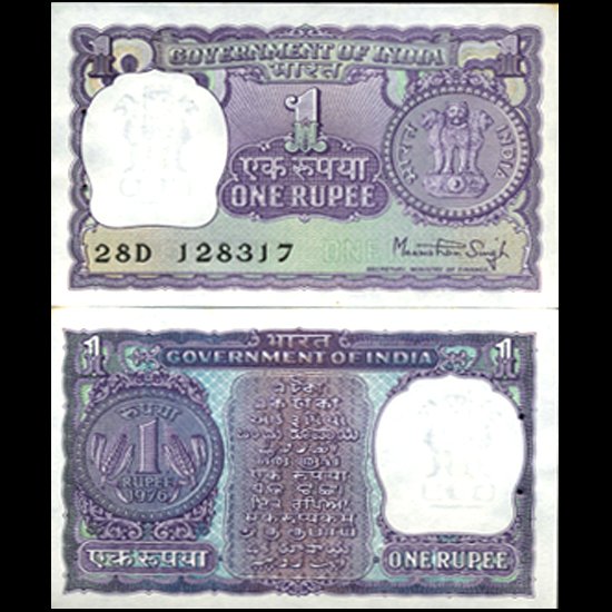 1976 India 1 Rupee Crisp Uncirculated