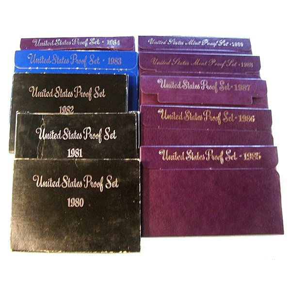 1980-1989 (10) US Mint Proof Sets in OGP