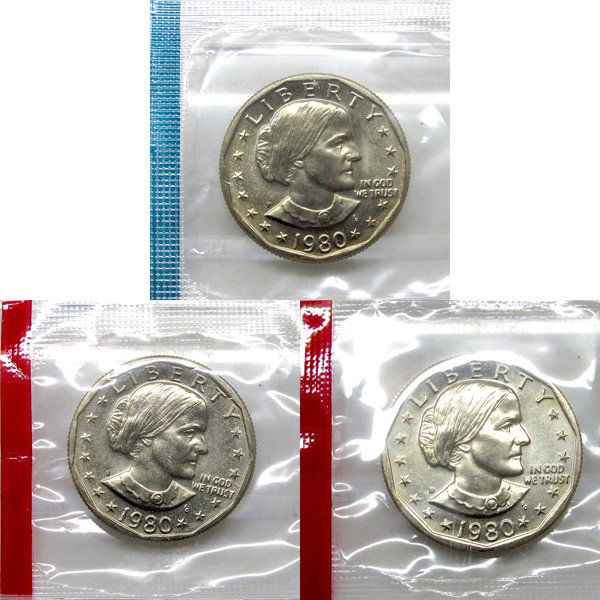 1980 P+D+S Susan Anthony Dollar Set - Mint Sealed