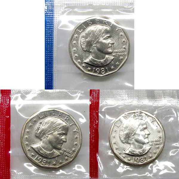 1981 P+D+S Susan Anthony Dollar Set - Mint Sealed
