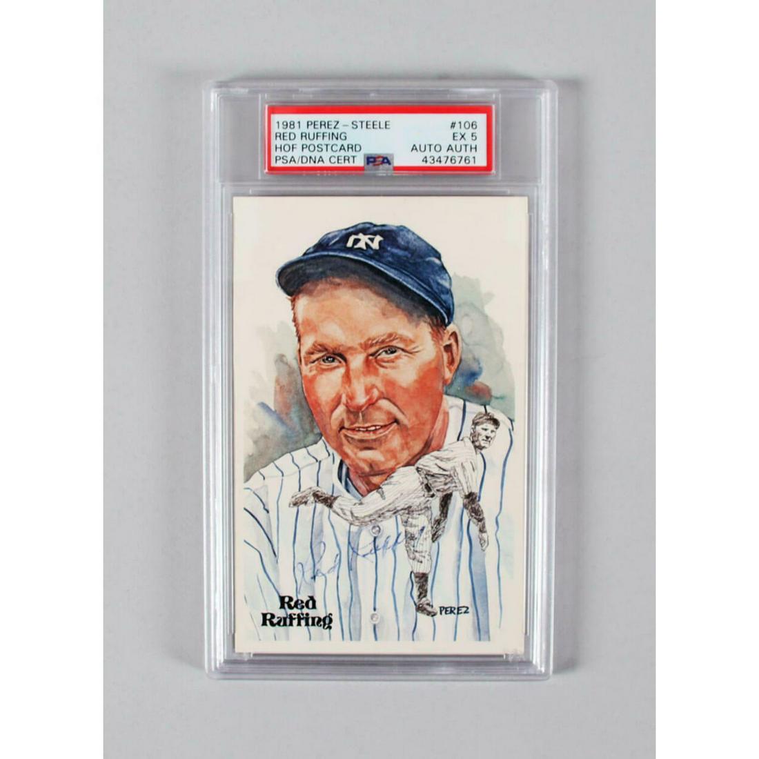 SoldRed Ruffing 4X6 Autographed PhotographWith Perez Steele. H.O.F. DP. IMPORTANT: Before bidding, please read the terms and conditions. When you registered for the auction you agreed to these terms and will be required to comply with them.See Sold Price