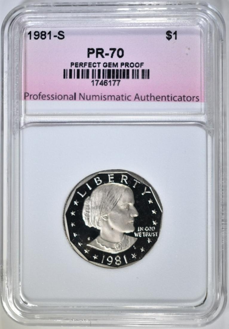 Sold1981-S TYPE-2 SBA DOLLAR PNA PERFECT GEM PRLEADERS IN ON-LINE AUCTIONS ESTIMATE $500 - $550.See Sold Price