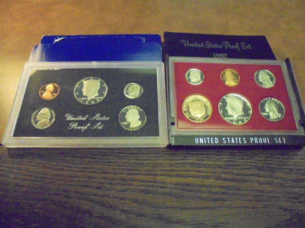 SoldThirteen U.S. Mint Proof Sets - (2) 1981, (2) 1982, (2) 1983, (2) 1984, (2) 1985, (2) 1986, 1990 -Thirteen U.S. Mint Proof Sets - (2) 1981, (2) 1982, (2) 1983, (2) 1984, (2) 1985, (2) 1986, 1990 - Some Boxes SoiledSee Sold Price