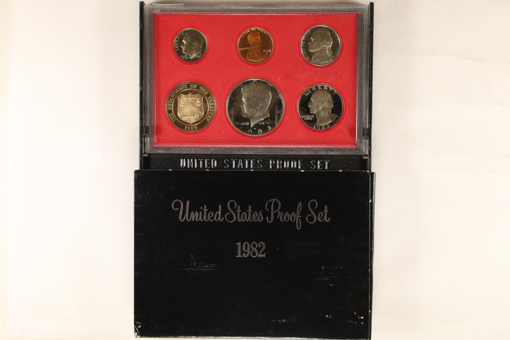 Sold4 1982 UNITED STATES PROOF COLLECTIBLE COIN SETSSET OF 4 1982 UNITED STATES PROOF COLLECTIBLE COIN SETS -COLLECTIBLE UNITED STATES U.S. CURRENCY COLLECTIBLE COINS -SEALED W BOX, UNCIRCULATED -DP101524See Sold Price