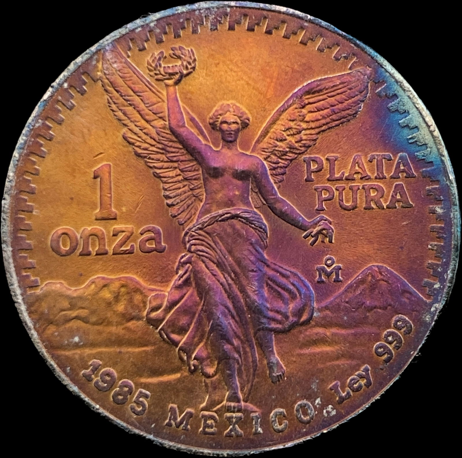 1985 Toned Mexico Silver 1 Onza Libertad SUPERB GEM BU