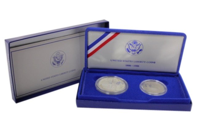 Sold1986 US Liberty Coins Proof SetIncludes 1986 Liberty Half-Dollar, and 1986 Liberty Silver DollarSee Sold Price