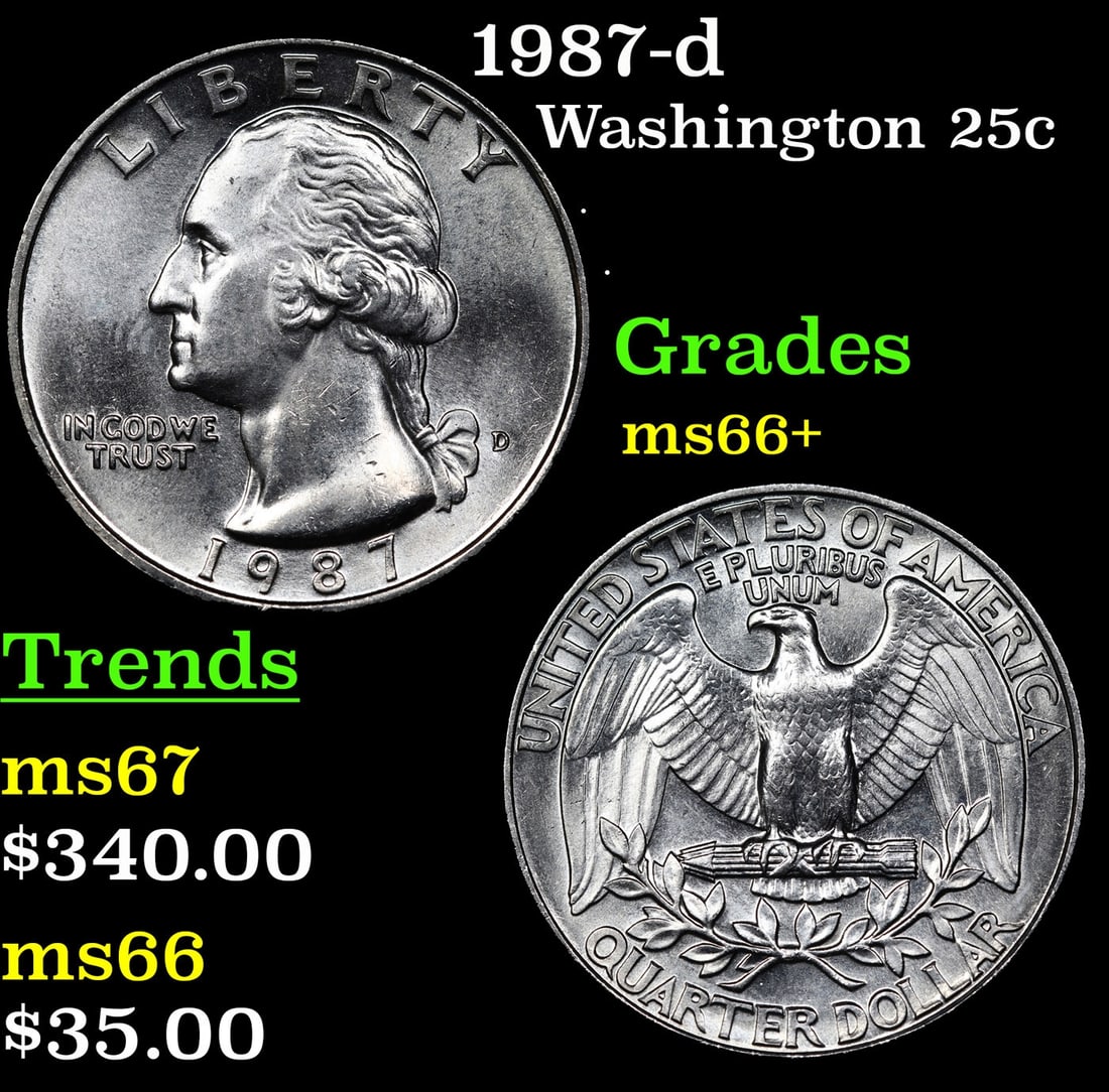 1987 D Washington Quarter 25c Grades Gem++ Unc