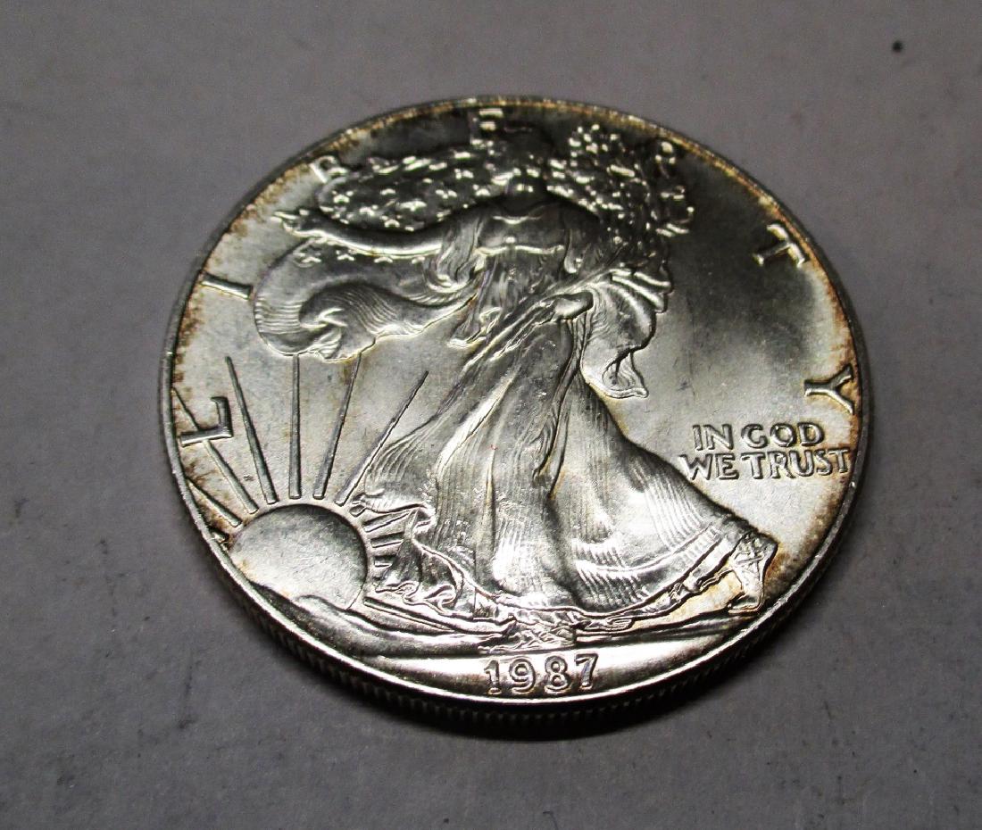 Sold1987 US Silver Eagle 1 oz. Business StrikeItem will be as shown in image. Please note bidder is responsible for any and all bids. All bids are a contract and agreement to pay.See Sold Price