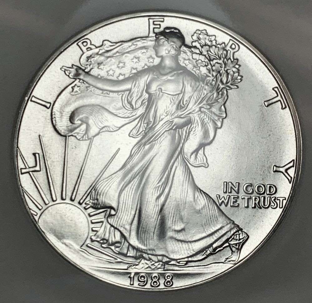 Sold1988 American Silver Eagle MS-69 NGC1988 American Silver Eagle MS-69 NGC Product ID: 6899 Year: 1988 Grade Service: NGC Denomination: 1 Dollar Metal Content: 1 troy oz Purity: .999 Thickness: 2.98 mm Diameter: 40.6See Sold Price