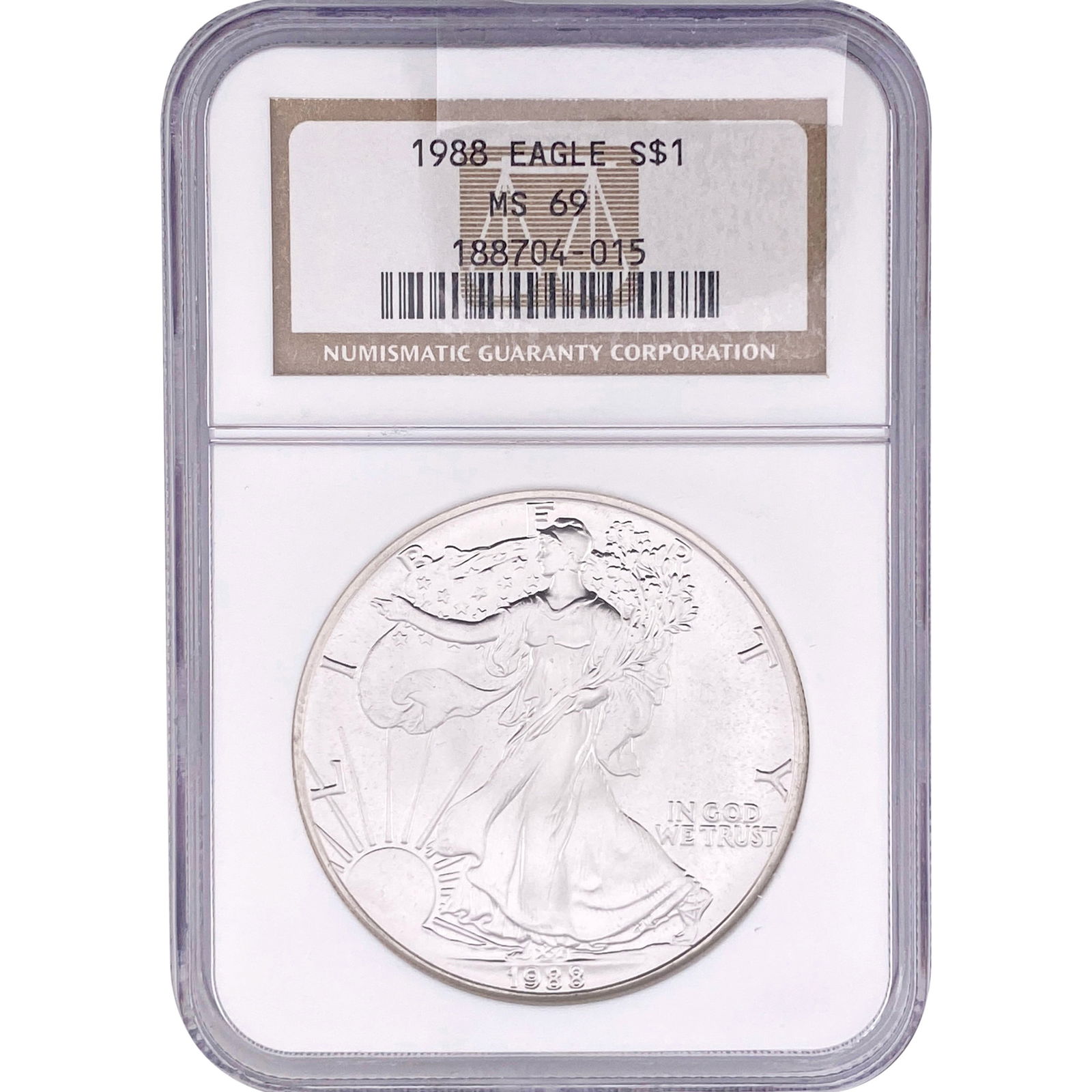 Sold1988 American Silver Eagle NGC MS69Winner shall receive the exact coin shown here. (JM/PB)See Sold Price