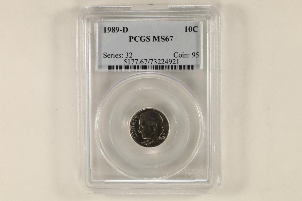 1989-D ROOSEVELT DIME PCGS MS67
